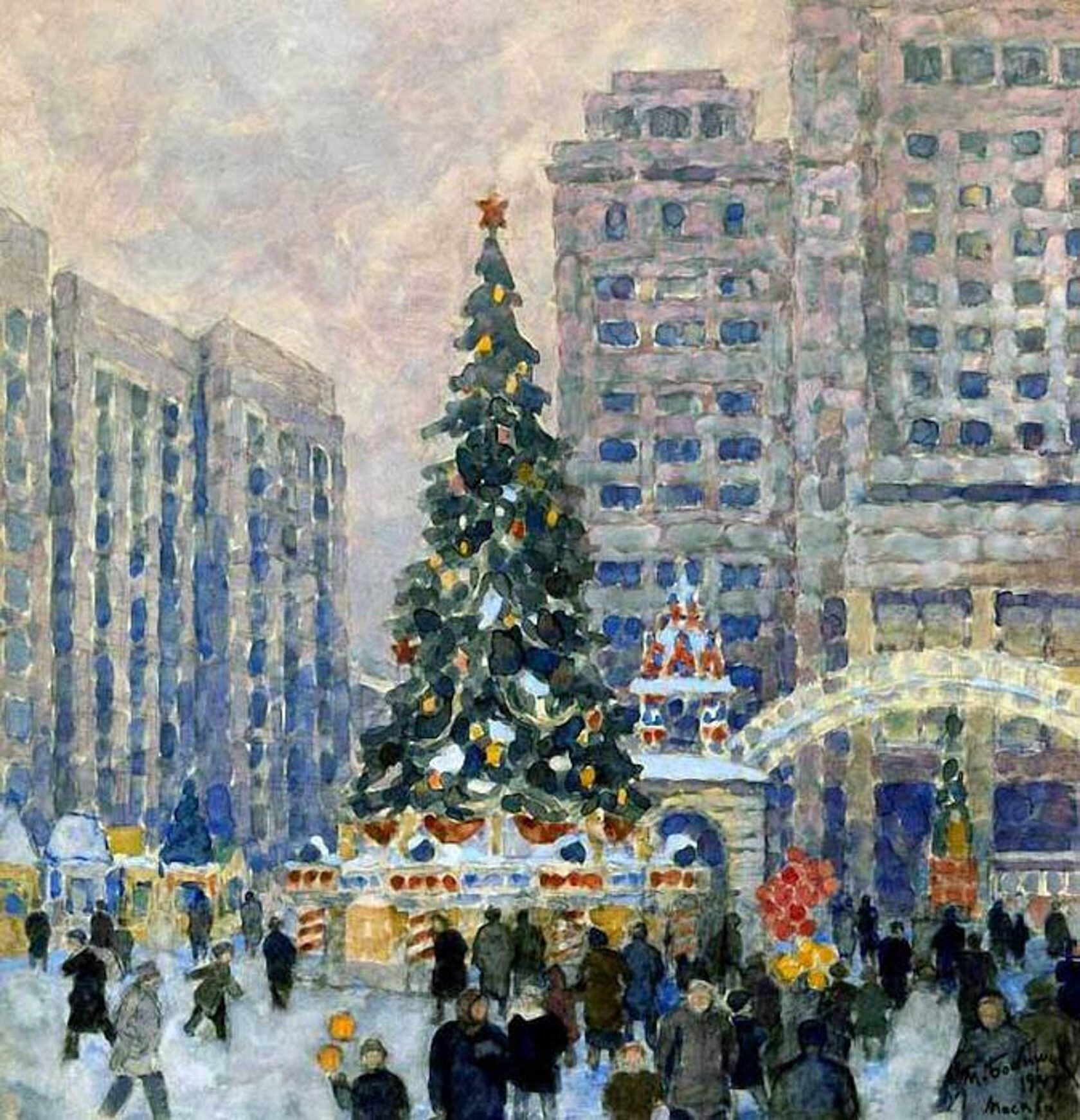 Подобно галереям, мы объединили совершенно разных художников со своим видением Нового года, у которых есть одно общее — передача той волшебной, доброй и радостной атмосферы праздника.